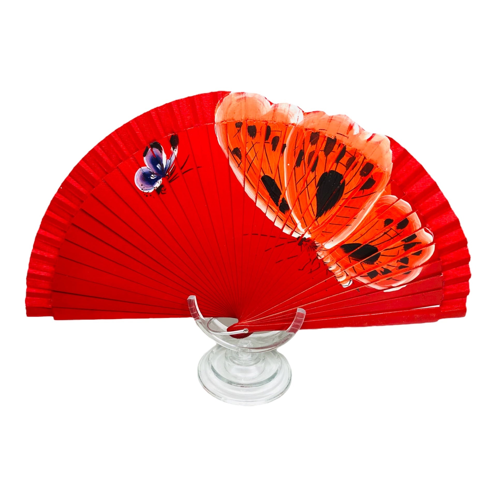 Handcrafted by expert Spanish artisans, these 9-inch fans showcase a stunning flower motif on both sides. Made with top-grade wood and acrylic paints, these fans are of superior quality. The slight movement of their opening and closing creates a calming sound, making them the perfect fashion accessory for women to complement their daily outfits.