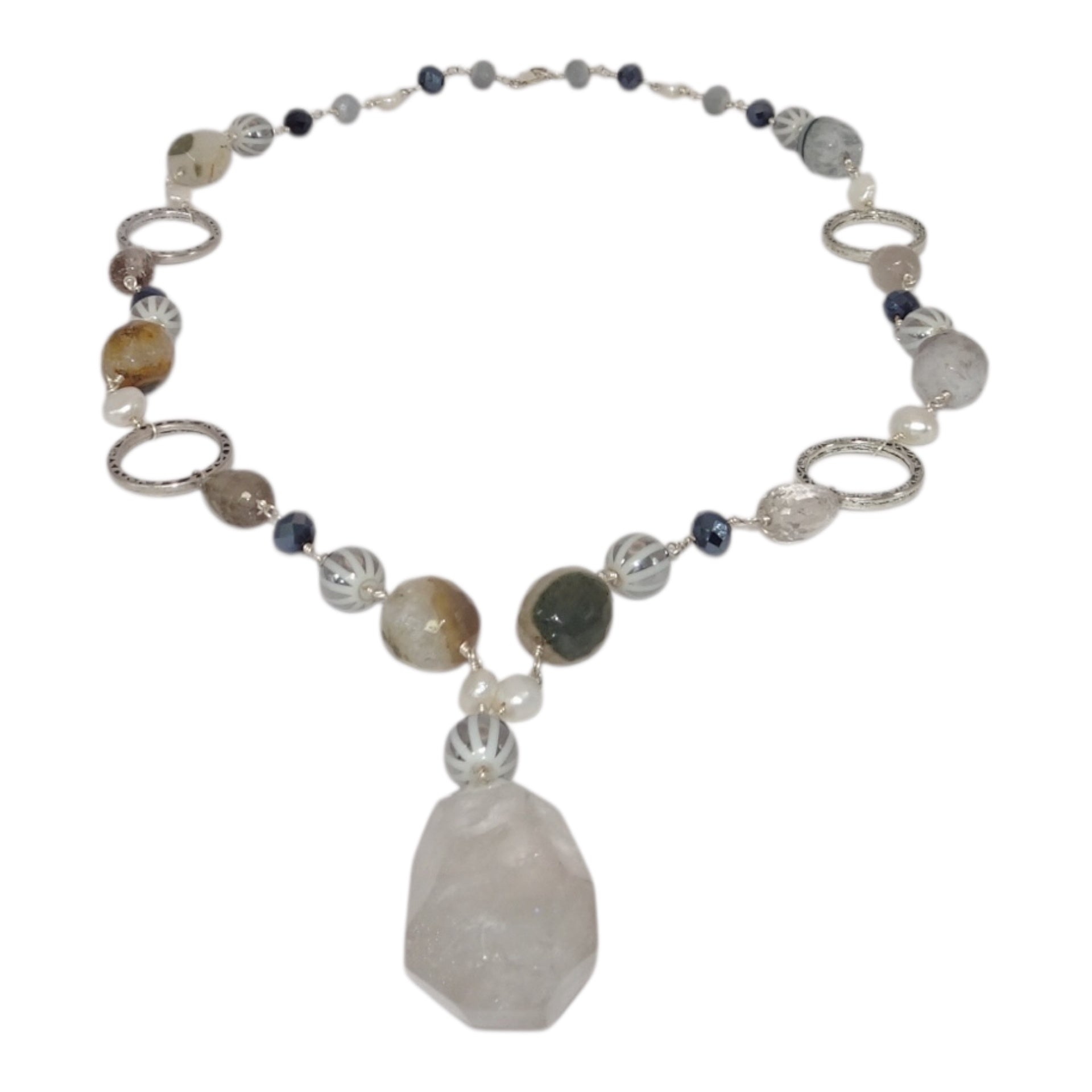 This collection features sterling silver necklaces adorned with authentic natural stones. Each piece exudes sophistication and refined style. The natural stones not only showcase nature’s beauty but also offer calming energy and balance. Versatile in design, these necklaces complement any outfit, instantly elevating your look with a touch of elegance and grace.